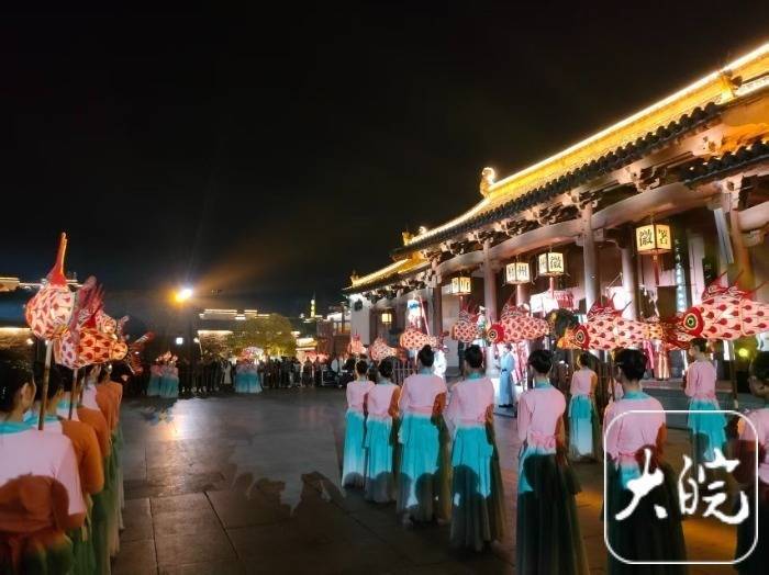 r12月19日晚,大皖新闻记者在徽州古城的徽州府衙广场现场观看了《大鱼徽州》演出,数十名少女手举鱼灯,穿着传统服饰,在变幻的光影中翩翩起舞,鱼灯在光影中闪烁传下,宛如一条条鱼儿在游动,场景非常具有动感美。观众将偌大的府衙广场挤得水泄不通,精彩演出让人们连连喝彩,观众高高举起的手机密密麻麻,在夜色中也成了一道风景。