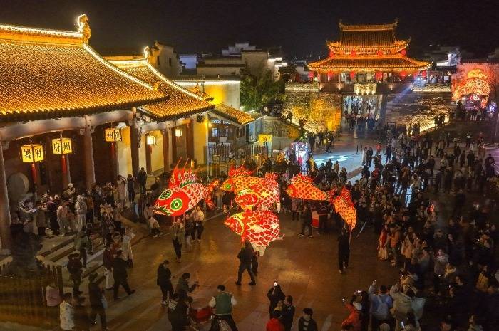 鱼灯,这项寓意吉祥的古老民俗,是本次所有“上新”的灵魂所在。它已从一个节庆民俗表演,演进为驱动全域文旅的超级IP。鱼灯的活力根植于“主客共享”,在汪满田村、瞻淇村等地,鱼灯巡游是全民参与的盛事。如今,这一传统被创造性转化:游客白天可在文创店学习鱼灯制作,夜晚提着亲手绘制的鱼灯,加入巡游队伍,成为流动光影的一部分,真正实现从“观看者”到“参与者”的身份转变。